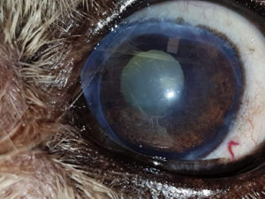 DSEK is a partial thickness corneal transplant that replaces the diseased endothelial layer with a healthy donor endothelium. During surgery, the abnormal endothelium is first removed. The endothelium was retrieved from a donor cornea and transplanted carefully into the diseased eye. The graft is held in place with an air bubble and the patient recuperates quietly at home. This is a novel approach in the field of veterinary ophthalmology. Eye Clinic for Animals were the first to develop this technique, starting with pre-clinical trials in 2017. Our first clinical trial finished in 2018. Since then we have been doing these DSEK surgeries as routine.